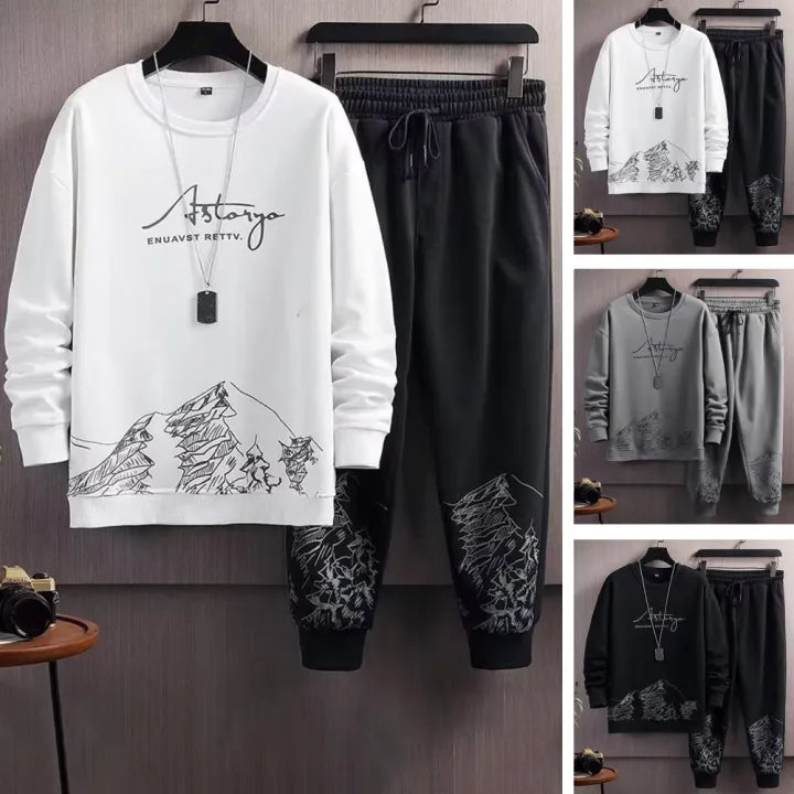 Men’s Premium 2PCS Track Suit – Mountain Print | Gym & Casual Wear